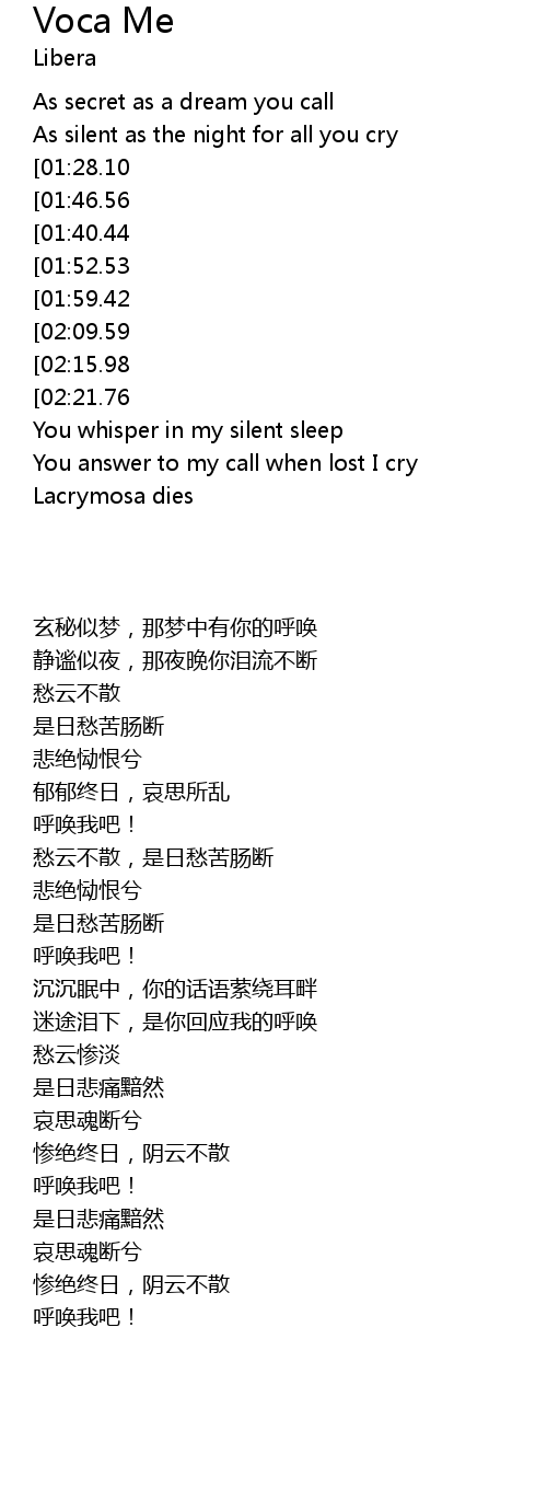 | [03:09.95][01:59.42] | Lacrymosa Dolorosa dies illa |
