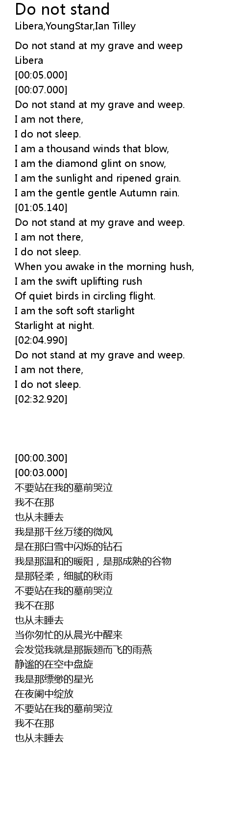 | [00:00.300] | Do not stand at my grave and weep |