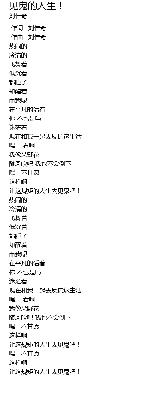 | [04:24.288] | 让这规矩的人生去见鬼吧! |