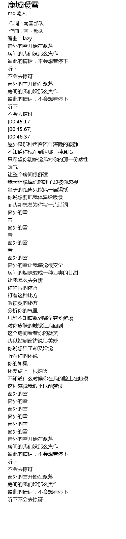 | [01:59.13] | 窗外的雪 |