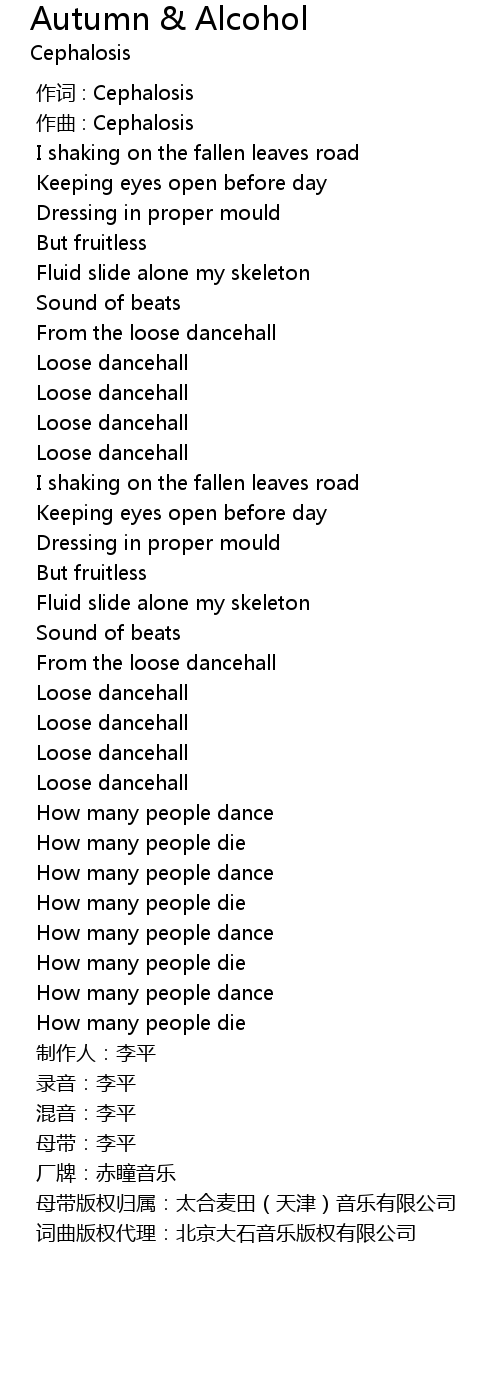 | [00:01.000] | zuò qǔ : Cephalosis |
