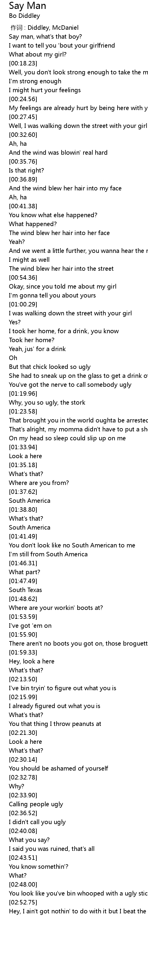 | [00:00.00] | 作词 : Diddley, McDaniel |