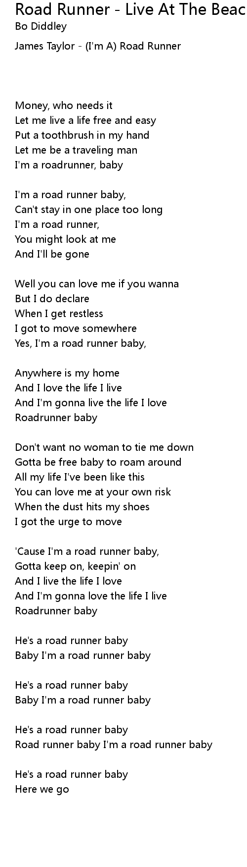 Road runner baby I'm a road runner baby |