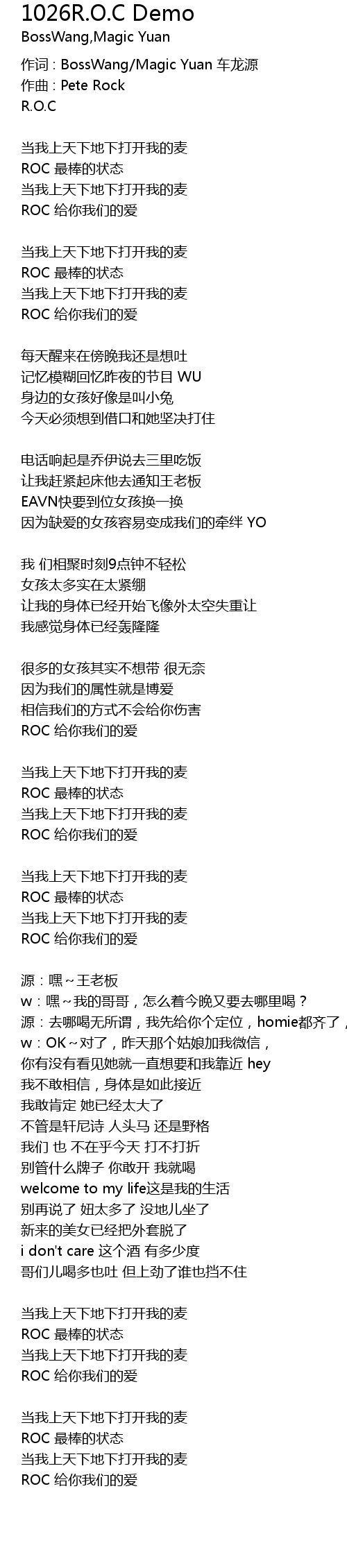 | 作词 : BossWang/Magic Yuan 车龙源 | |