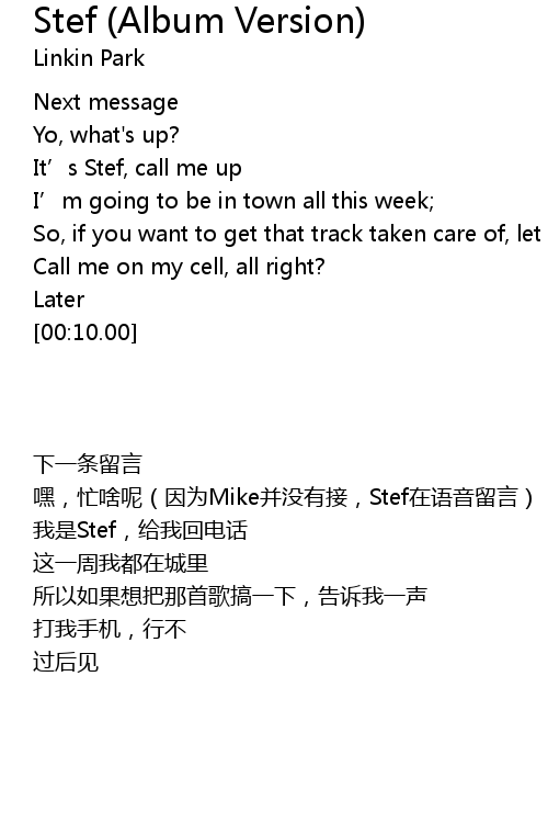 | [00:02.05] | It' s Stef, call me up |