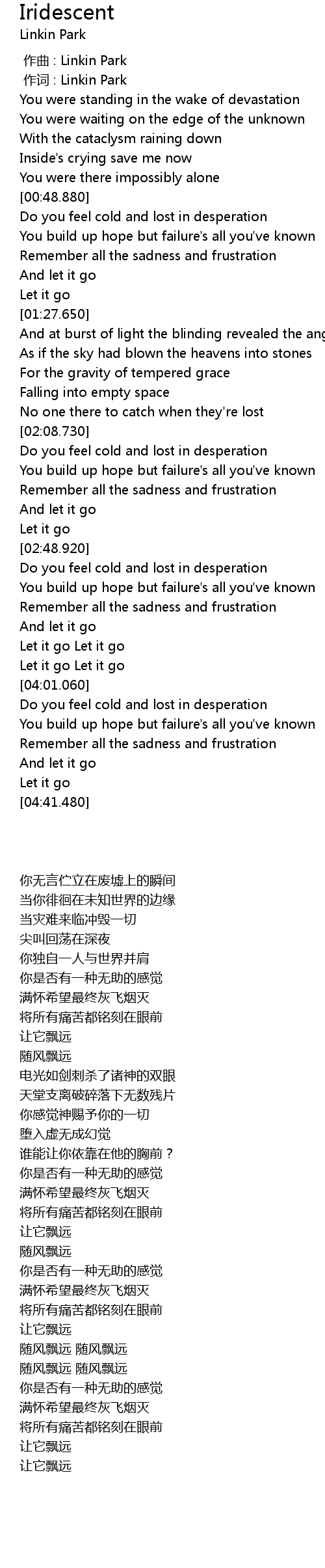 | [00:01.00] | 作词 : Linkin Park |