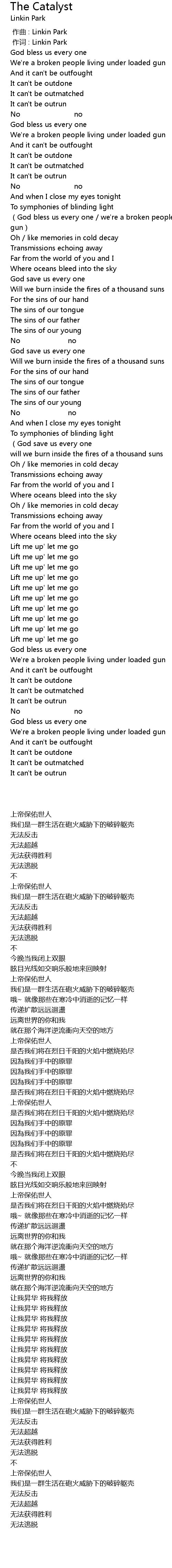 | [00:00.00] | 作曲 : Linkin Park |