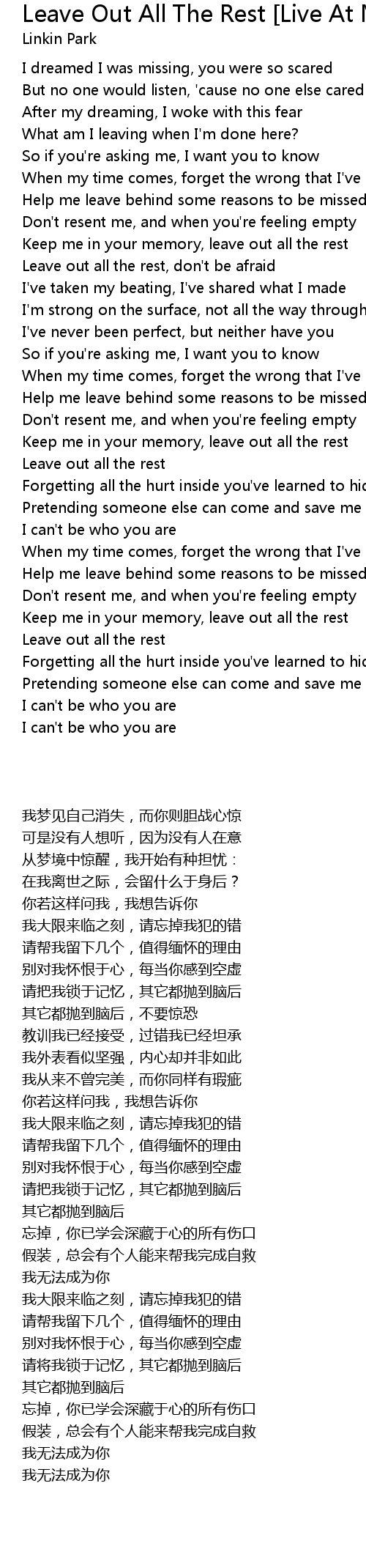 Song Leave Out All The Rest [Live At Milton Keynes]