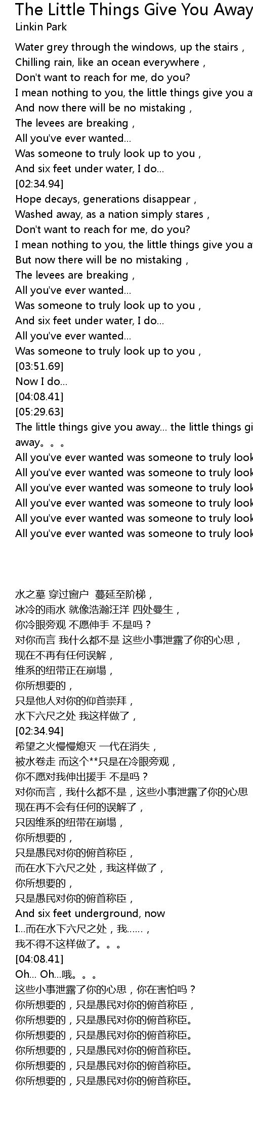 | [05:51.03] | The little things give you away... the little things give you away。。。 |