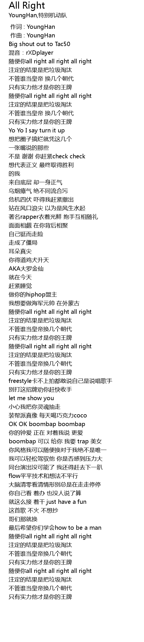 | [02:42.20] | suí biàn nǐ all right all right all right |