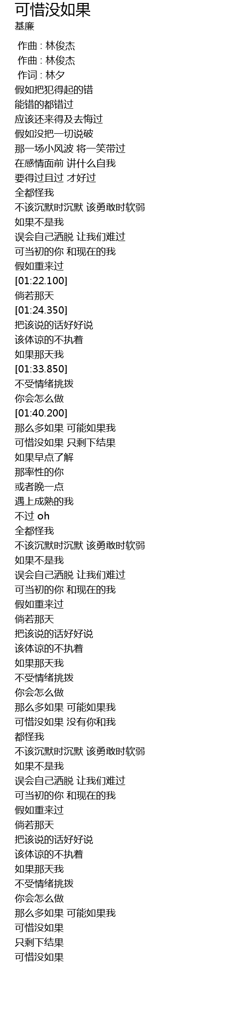| [03:16.830] | 可惜没如果 没有你和我 |