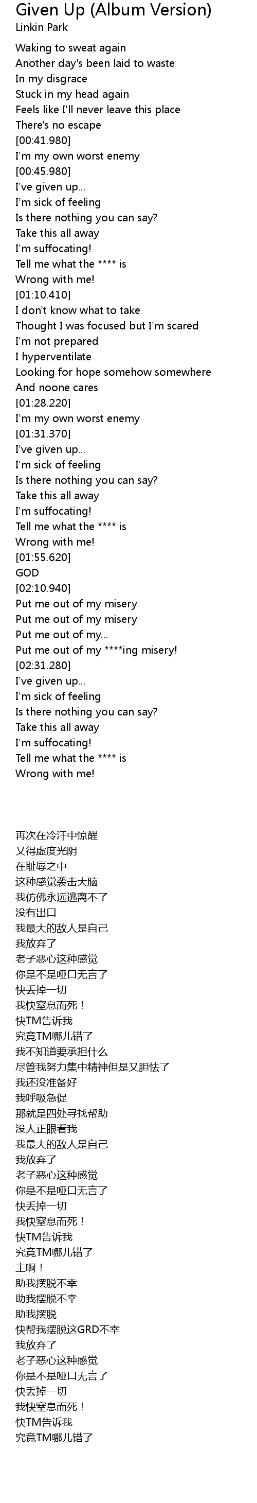 Given Up (Album Version) Lyrics