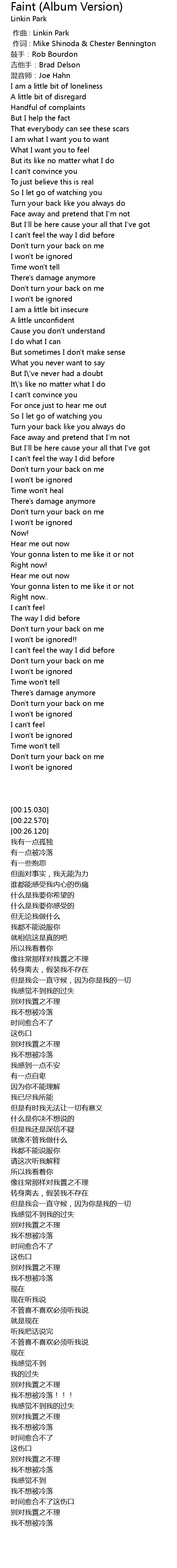 | [00:01.00] | 作词 : Mike Shinoda & Chester Bennington |