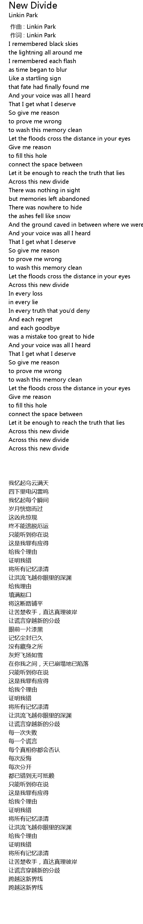 | [00:00.00] | 作曲 : Linkin Park |