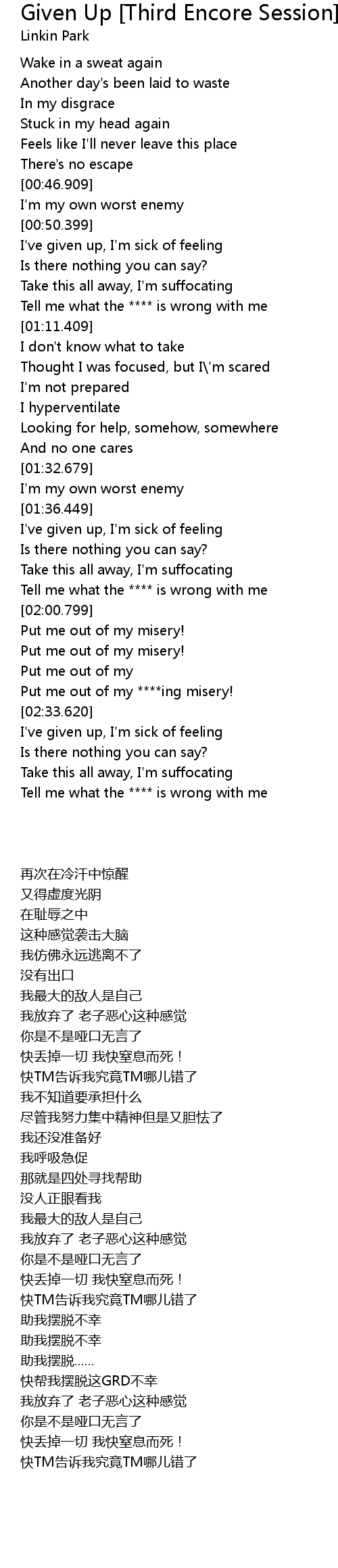 Take this all away, I'm suffocating |