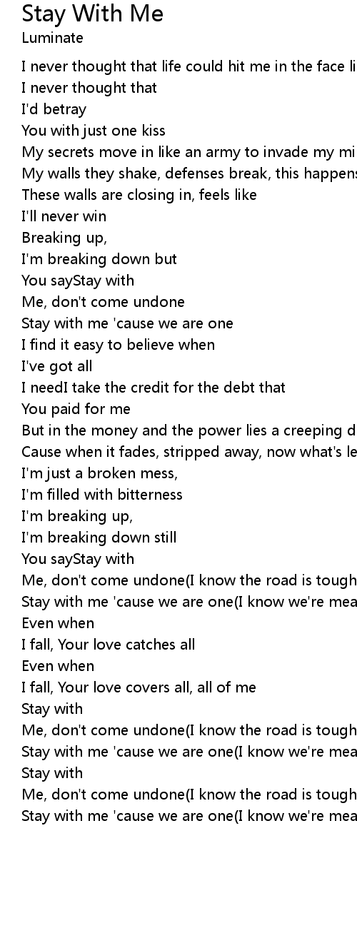 | Stay with me 'cause we are one(I know we're meant to be, this is our destiny) | |