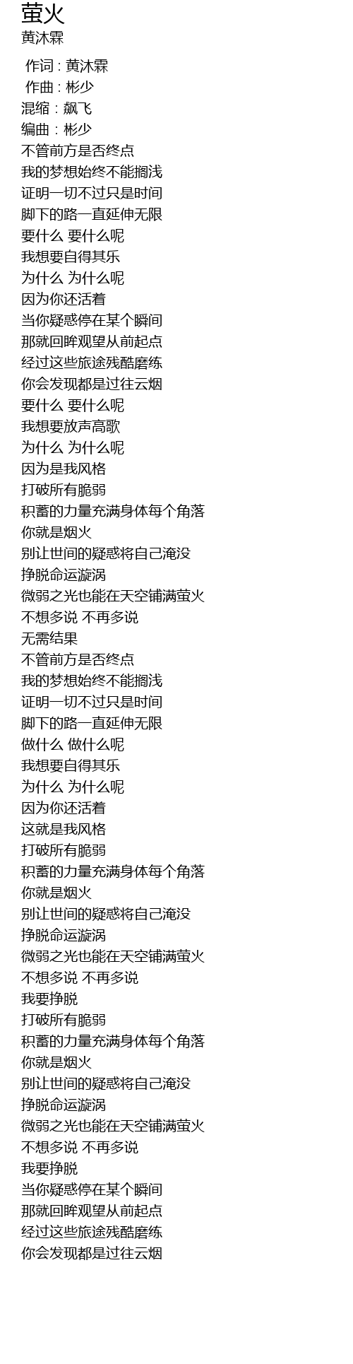 | [01:57.938] | 微弱之光也能在天空铺满萤火 |