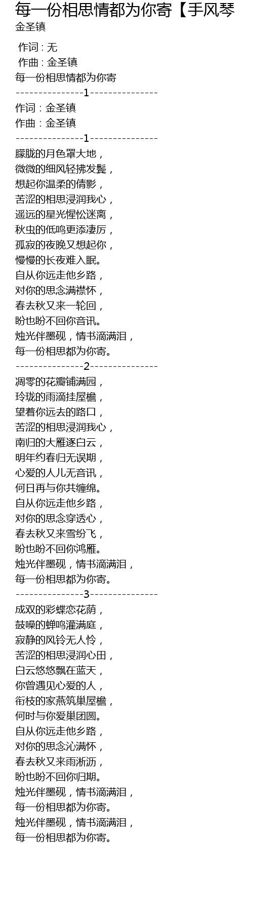 | [03:30.06] | měi yī fèn xiāng sī dōu wèi nǐ jì. |