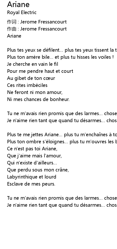| Plus te me jettes Ariane plus tu m' encha nes a toi ! | |