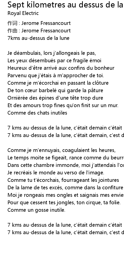 | 7 kms audessus de la lune, c'é tait demain, c' est dé jà a ! |
