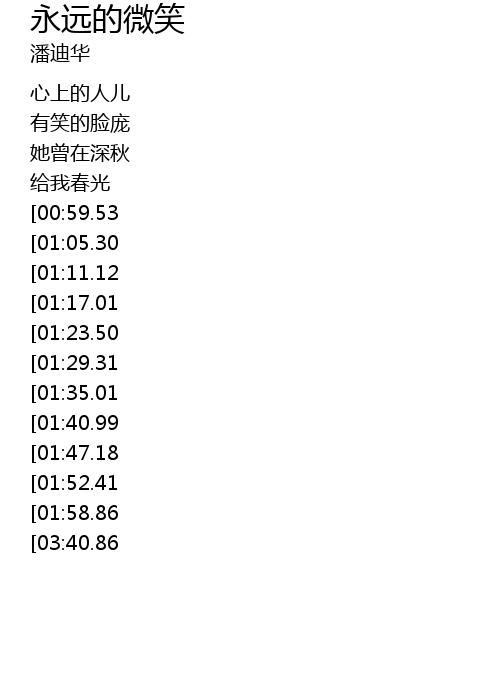 | [03:34.81][01:58.86] | 愿你的笑容 |