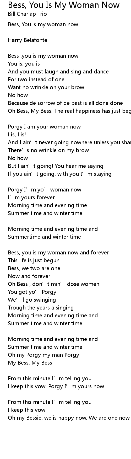 | Oh Bess, My Bess. The real happiness has just begun | |