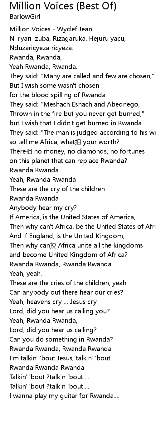 | [00:00.00] | Million Voices Wyclef Jean |