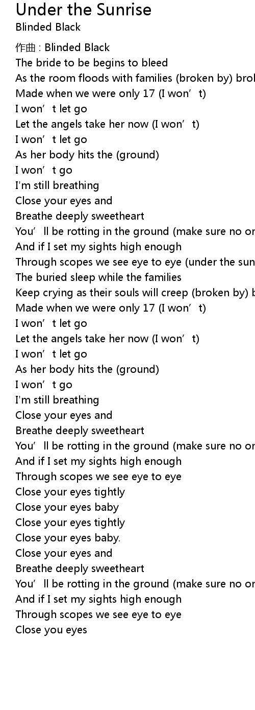 | Keep crying as their souls will creep broken by broken by all these lies | |