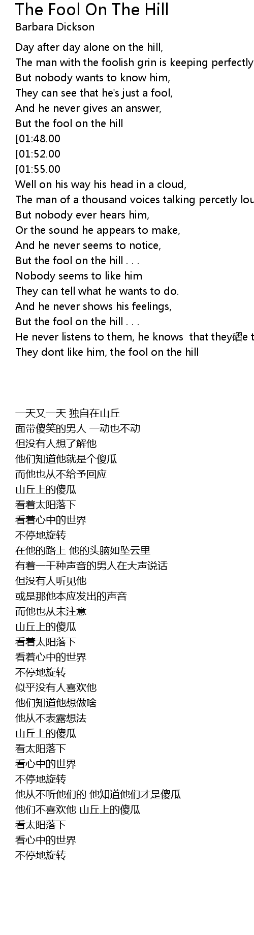 | [02:16.00] | He never listens to them, he knows that they磖e the fool |