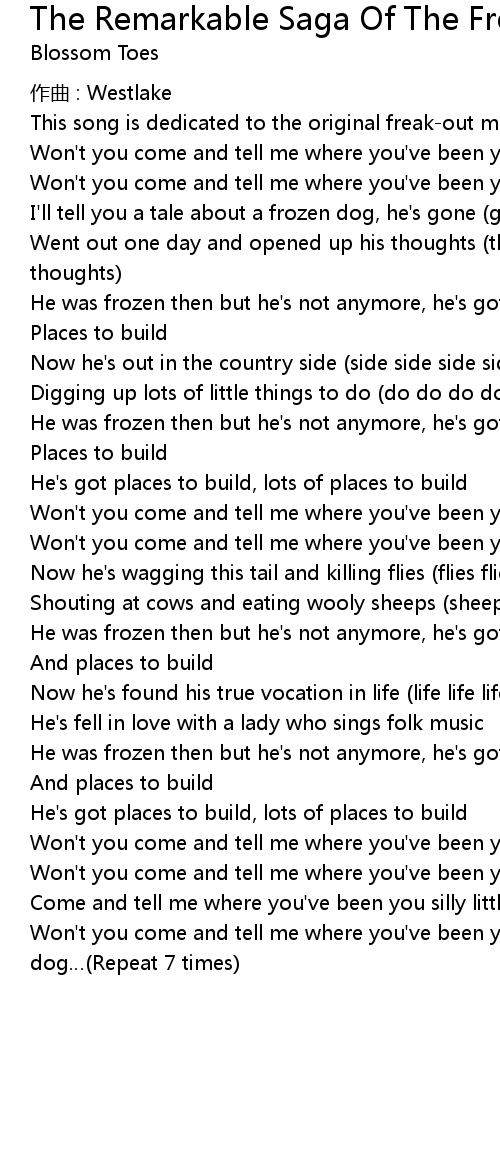 | I' ll tell you a tale about a frozen dog, he' s gone gone gone gone gone | |