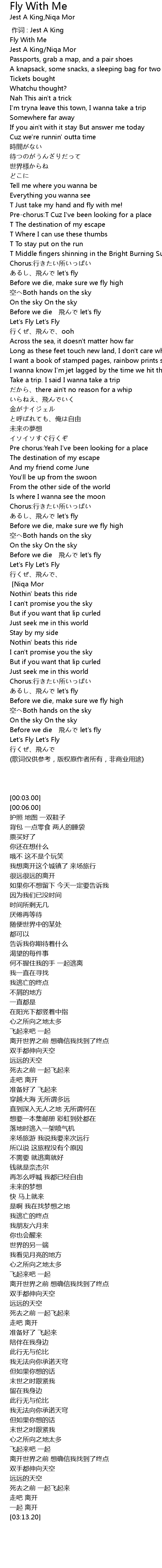 | [00:03.00] | Fly With Me |