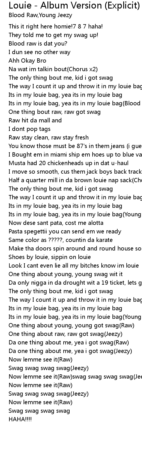 Now lemme see it(Raw)swag swag swag swag(Jeezy) |