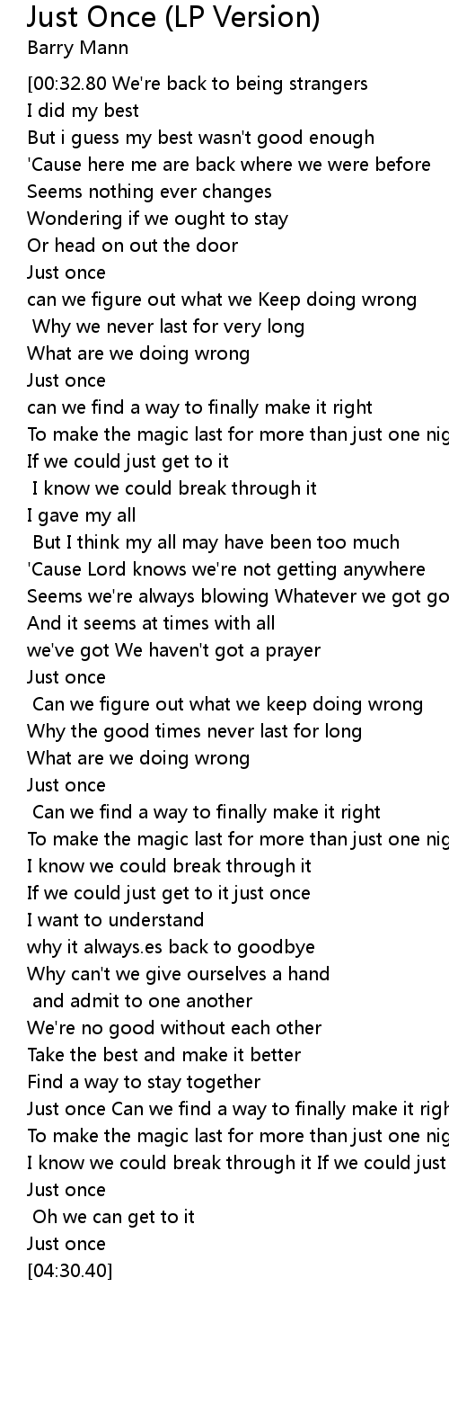 Just once Can we find a way to finally make it right |