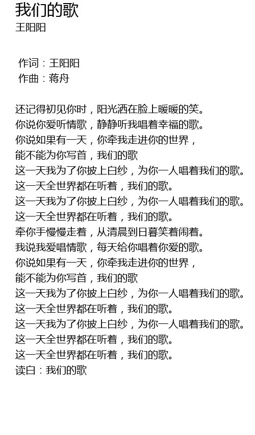 | 这一天我为了你披上白纱,为你一人唱着我们的歌。 | |