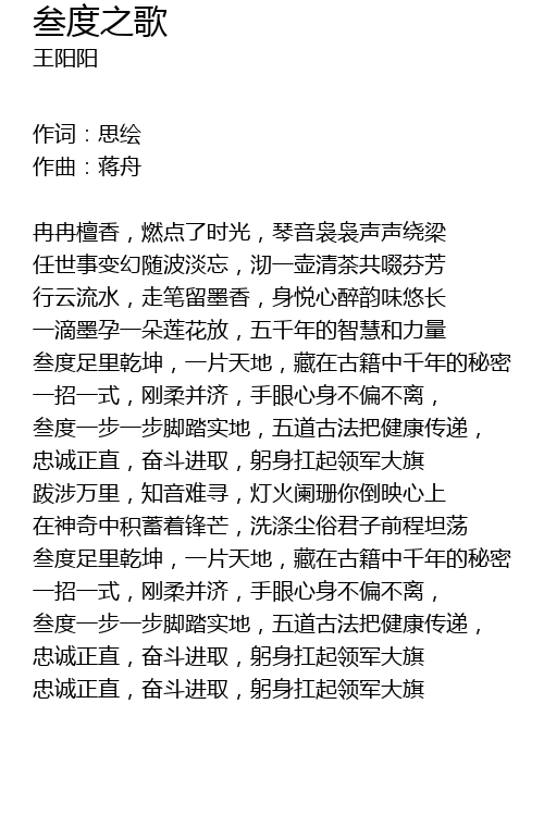 | sān dù yī bù yī bù jiǎo tā shi dì, wǔ dào gǔ fǎ bǎ jiàn kāng chuán dì, | |