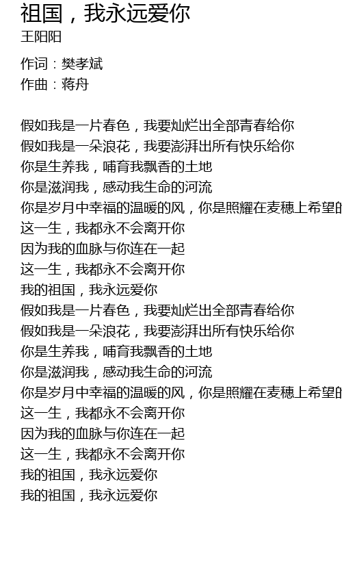| 我的祖国,我永远爱你 |