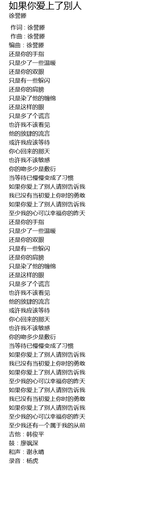 | [00:00.000] | 作词 : 徐誉滕 |