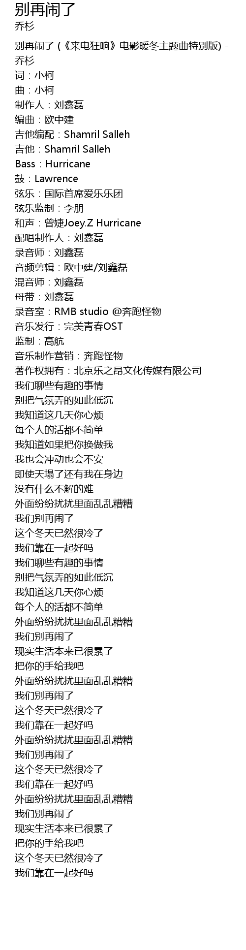 | [00:00.41] | 别再闹了 (《来电狂响》电影暖冬主题曲特别版) - 乔杉 |