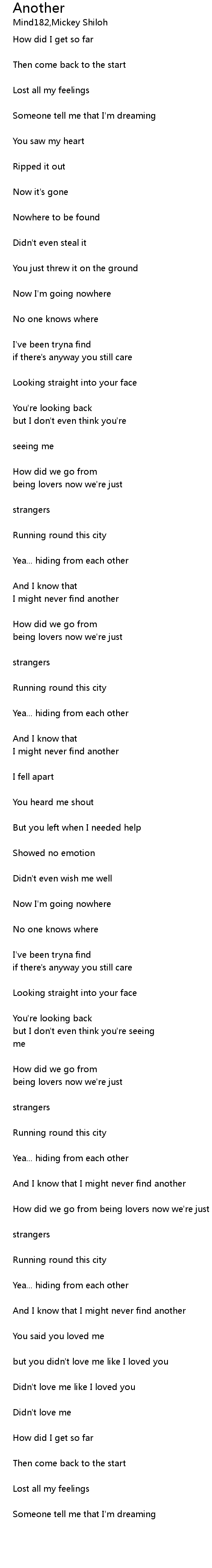 | How did we go from being lovers now we're just | |