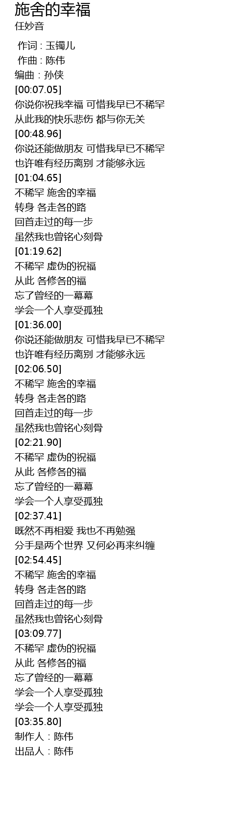 | [01:05.30] | 不稀罕 施舍的幸福 |