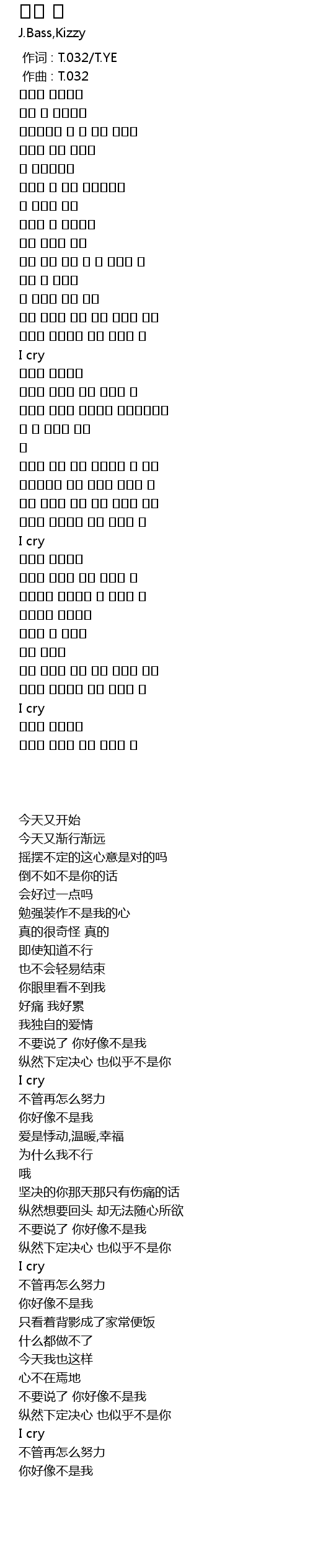 作词 : T.032/T.YE |