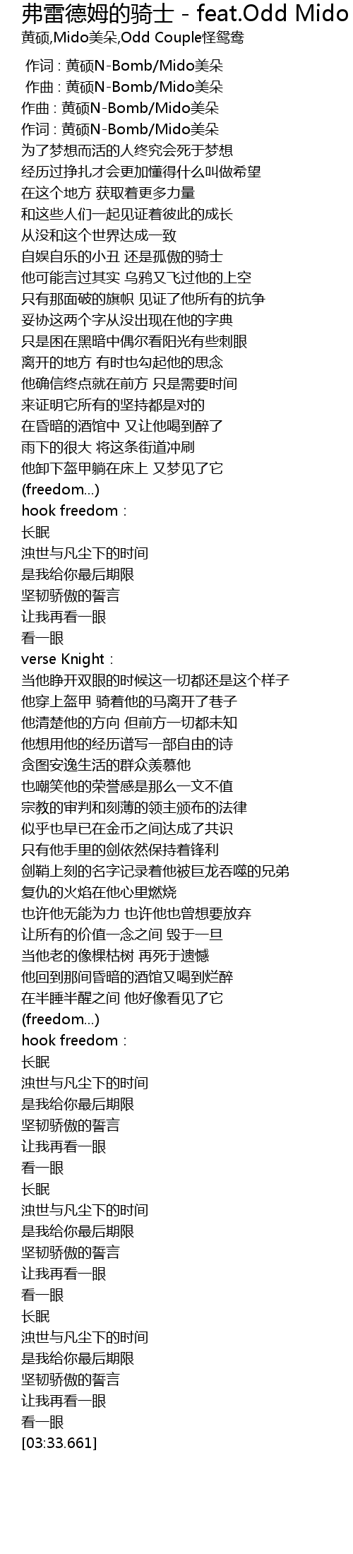 | [00:05.582] | zuo ci : huang shuo NBomb Mido mei duo |