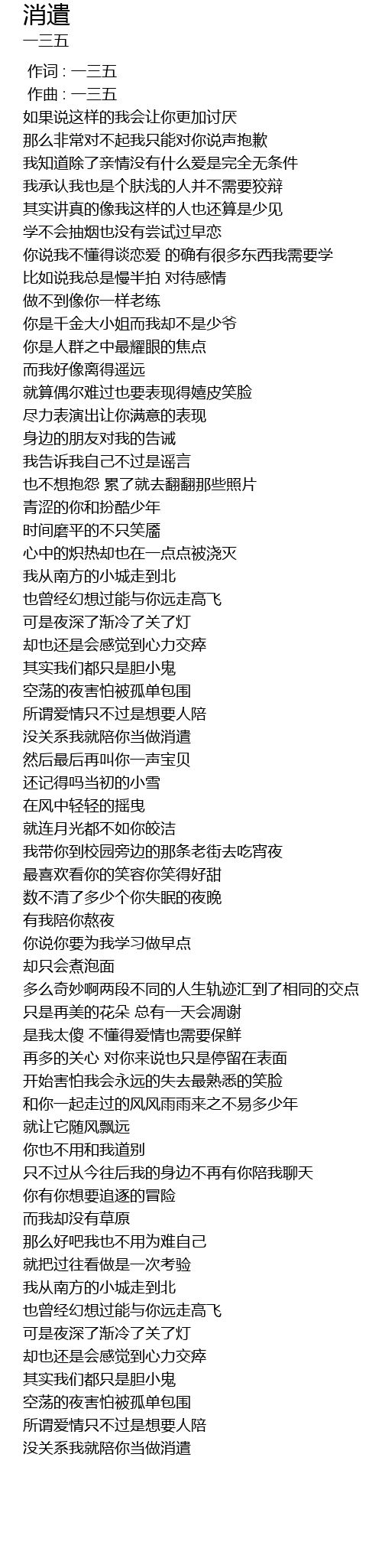 | [00:00.000] | zuò cí : yī sān wǔ |