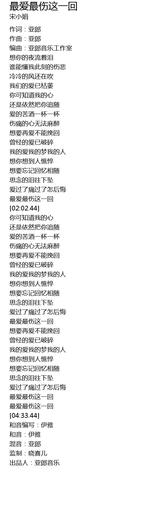 | [04:20.64] | zuì ài zuì shāng zhè yī huí |