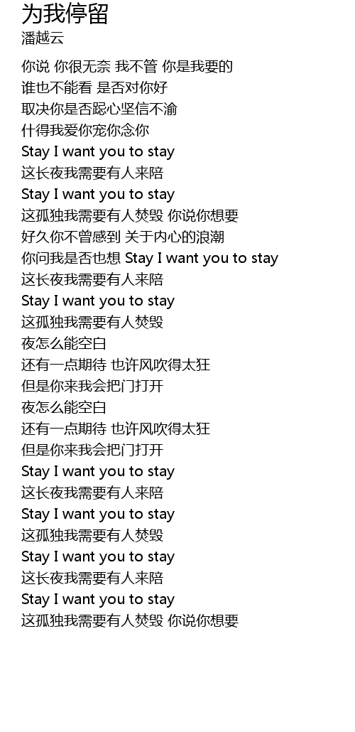 | [01:19.26] | 你问我是否也想 Stay I want you to stay |