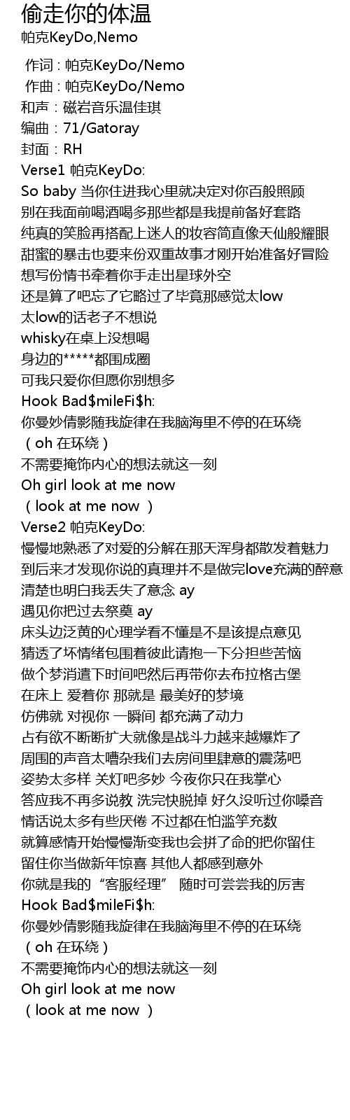 | [00:00.000] | 作词 : 帕克KeyDo/Nemo |