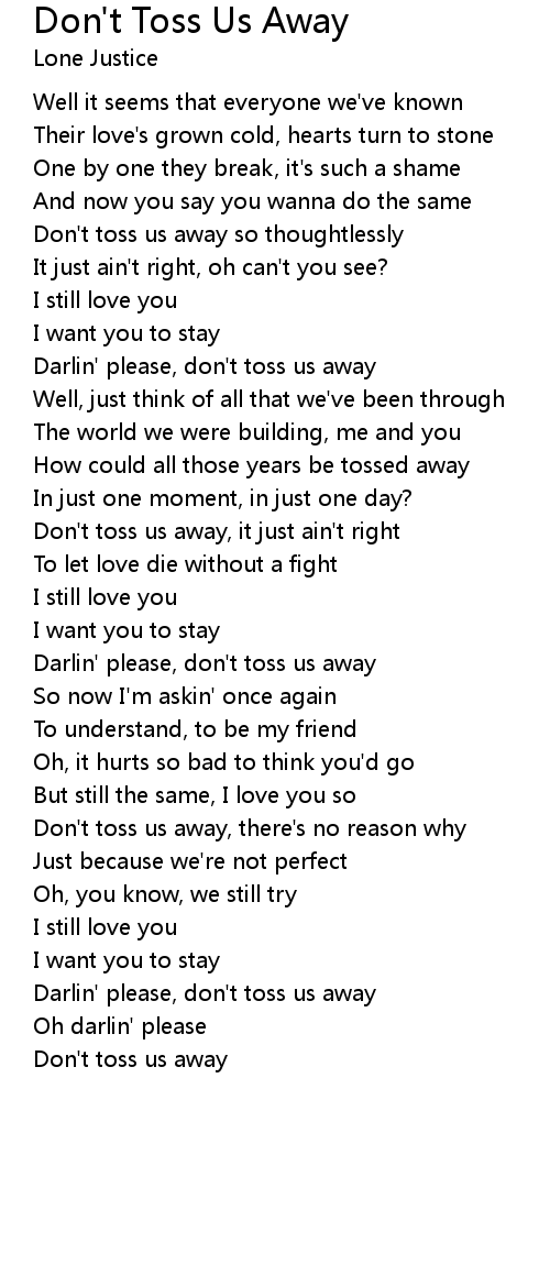 Don't toss us away |
