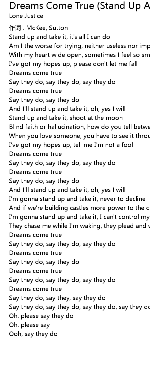 | I'm gonna stand up and take it, I can't control my dreams | |