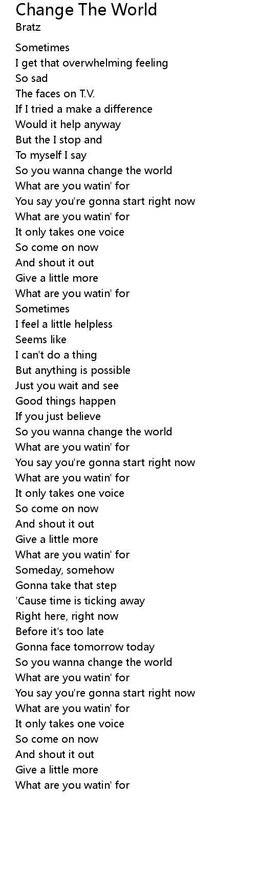 So you wanna change the world |