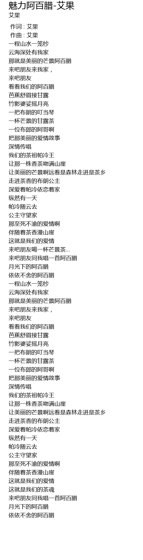 | [00:43.222] | 那就是美丽的芒景阿百腊 |